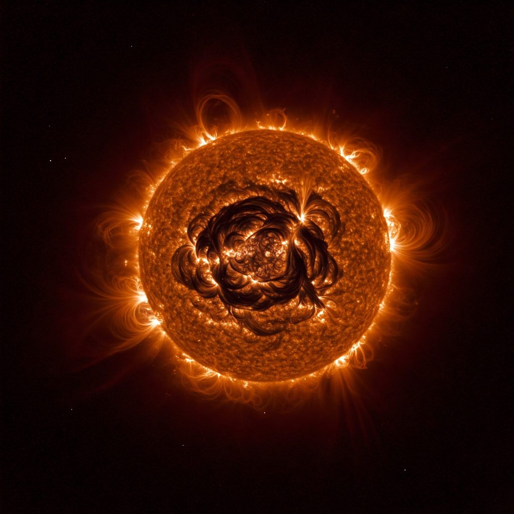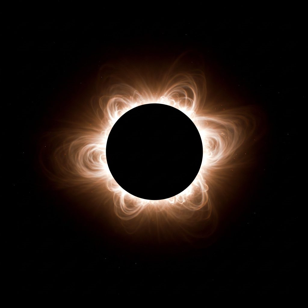 Korona słoneczna to najbardziej zewnętrzna warstwa atmosfery Słońca, rozciągająca się na miliony kilometrów w przestrzeń kosmiczną. Podczas całkowitego zaćmienia Słońca jawi się jako perłowa aureola wokół zakrytej tarczy słonecznej. Jednym z najbardziej intrygujących aspektów korony jest jej ekstremalnie wysoka temperatura, sięgająca milionów stopni Celsjusza. Ten fakt stanowi tak zwany paradoks ogrzewania korony, ponieważ jest ona wielokrotnie gorętsza od fotosfery, której temperatura wynosi około 5500 stopni Celsjusza.